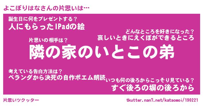 | 胡散臭い通販商品みたいなあだ名 | 『必ず成功する水晶球…その名も「よこぼりはな」』 |