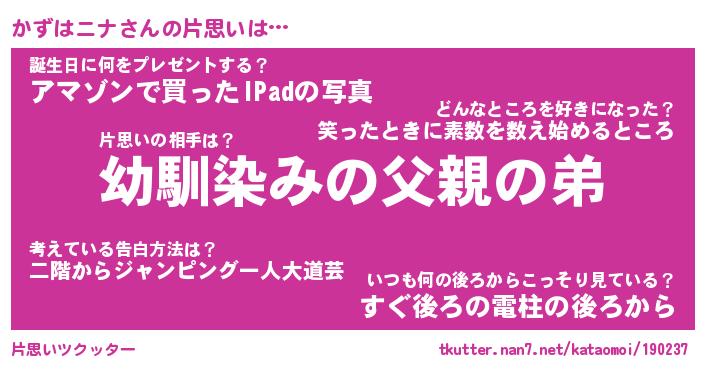 | 2回繰り返すあだ名 | 『かずかず』『かかずず』『うるうる』 |