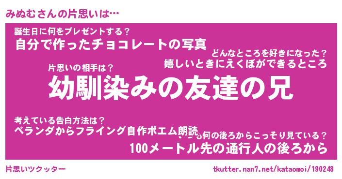 | ファンタジー風あだ名 | 『ミヌフェル』『エターナルミヌムー』 |