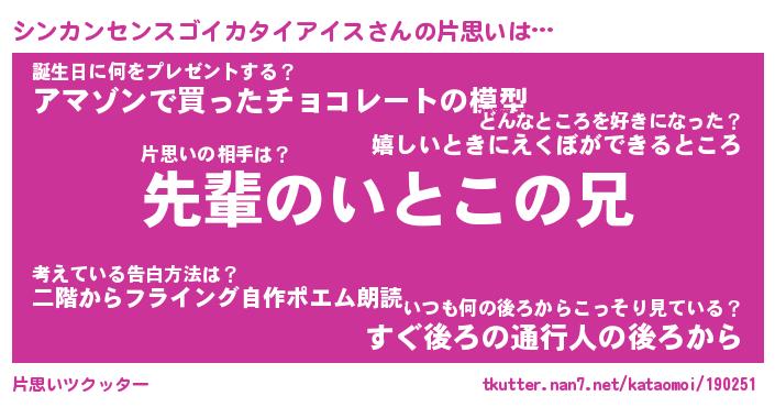 | ツイッター | シンカンセンスゴイカタイアイスさんのツイッターID『katatsumuri_idle』 |
