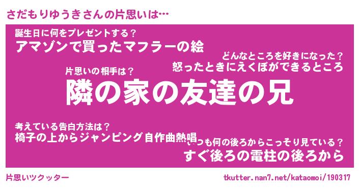 | 肩書あだ名 | 『さだもりゆうき御曹司』 |