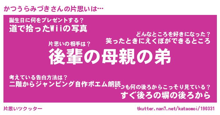 | ヘコむあだ名 | 『かつにー』『牛乳』『かつっぺ』 |