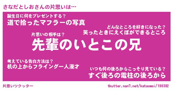 | 胡散臭い通販商品みたいなあだ名 | 『モテモテ間違いなし水晶球…その名も「さなだとしお」』 |