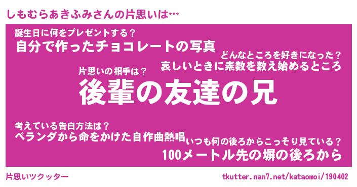 | 意味不明あだ名 | 『ペロリンしもむらあきふみ』 |