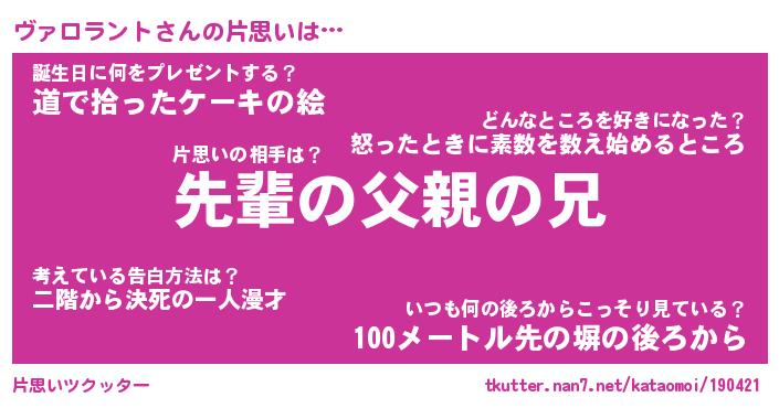 | ヘコむあだ名 | 『ヴァふぇ~』『牛乳』『ヴァ太郎』 |