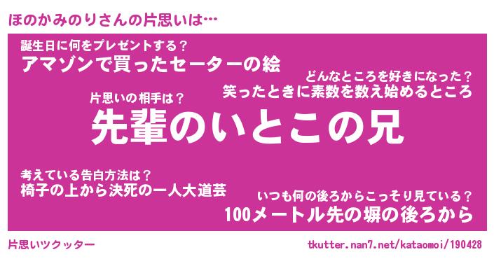 | 胡散臭い通販商品みたいなあだ名 | 『モテモテ間違いなし水晶球…その名も「ほのかみのり」』 |