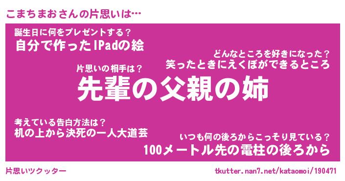 | 胡散臭い通販商品みたいなあだ名 | 『モテモテ間違いなし水晶球…その名も「こまちまお」』 |