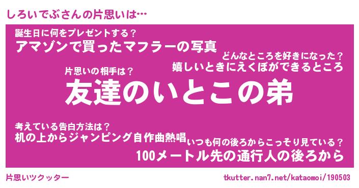 | ヘコむあだ名 | 『しろもー』『つくし』『しろお』 |