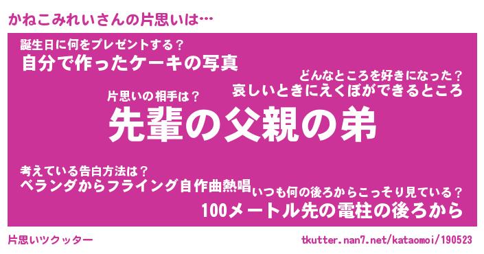 | ヒーロー風カッコイイあだ名 | 『スーパーカネコミレイ』『暗黒騎士カネ』 |