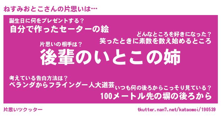 | ヘコむあだ名 | 『ねすにゅー』『つくし』『ねす太郎』 |