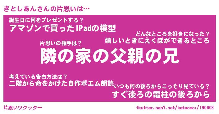| ヘコむあだ名 | 『きとにゅー』『つくし』『きとっぺ』 |