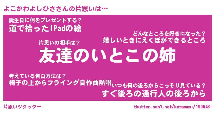 | ヘコむあだ名 | 『よこにゅー』『豆乳』『よこっ子』 |
