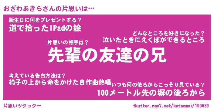 | 胡散臭い通販商品みたいなあだ名 | 『モテモテ間違いなし霊験あらたかなお札…その名も「おざわあきら」』 |