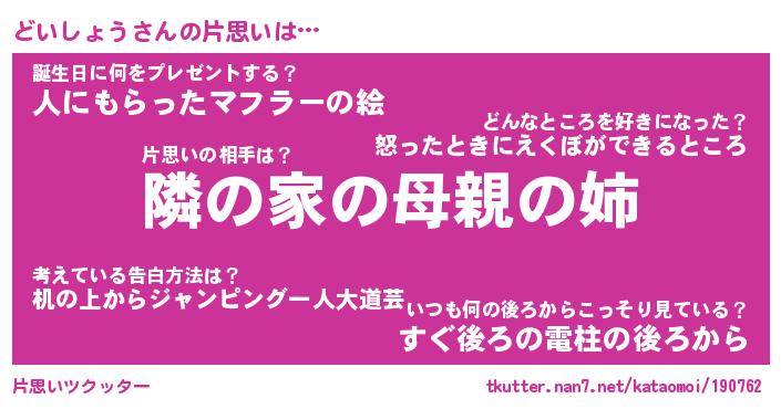 | 男性向けラノベタイトル風あだ名 | 『どいしょうの憂鬱』 |