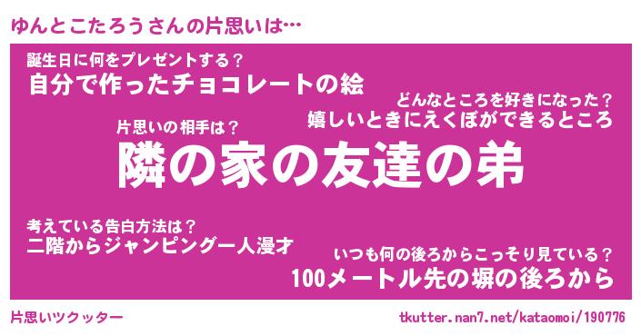 | 女子向けラノベタイトル風あだ名 | 『(仮)ゆんとこたろうのやんごとなき事情』 |