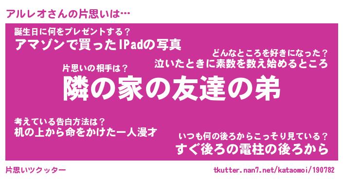 | 意味不明あだ名 | 『ペロリンアルレオ』『永久保存アルレオ』 |
