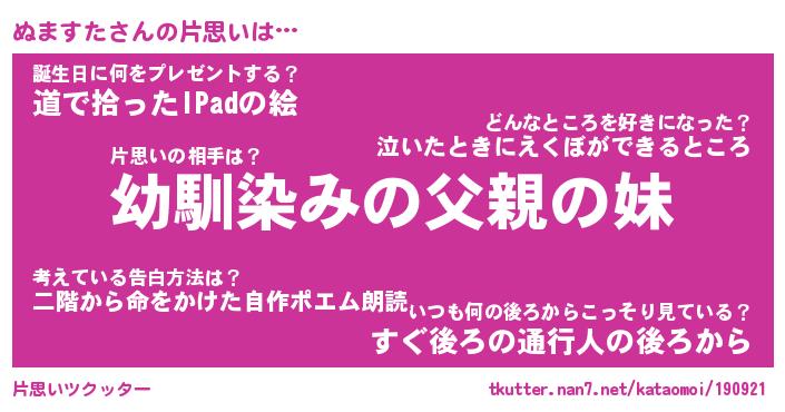 | 肩書あだ名 | 『ぬますたCEO』『ぬますた大統領』 |