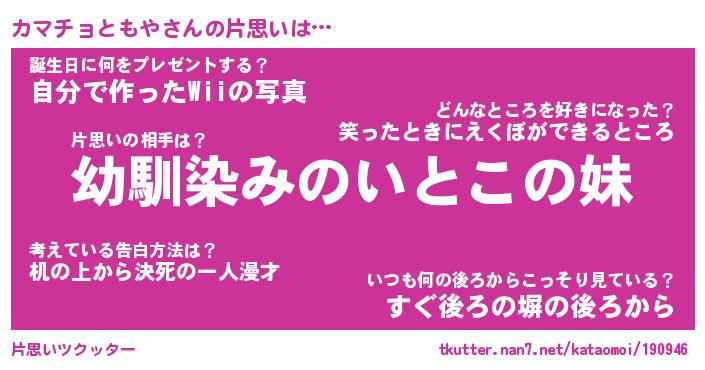 | 胡散臭い通販商品みたいなあだ名 | 『必ず成功する水晶球…その名も「カマチョともや」』 |