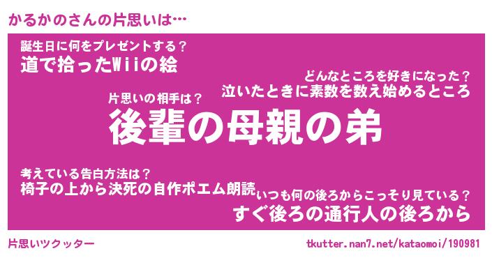 | 意味不明あだ名 | 『ペロリンかるかの』『永久保存かるかの』 |