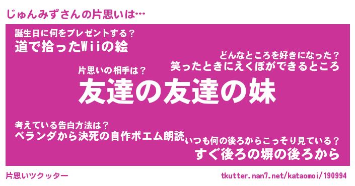 | 胡散臭い通販商品みたいなあだ名 | 『億万長者になれる霊験あらたかなお札…その名も「じゅんみず」』 |