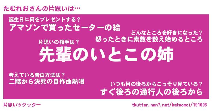 | 胡散臭い通販商品みたいなあだ名 | 『モテモテ間違いなし霊験あらたかなお札…その名も「たむれお」』 |