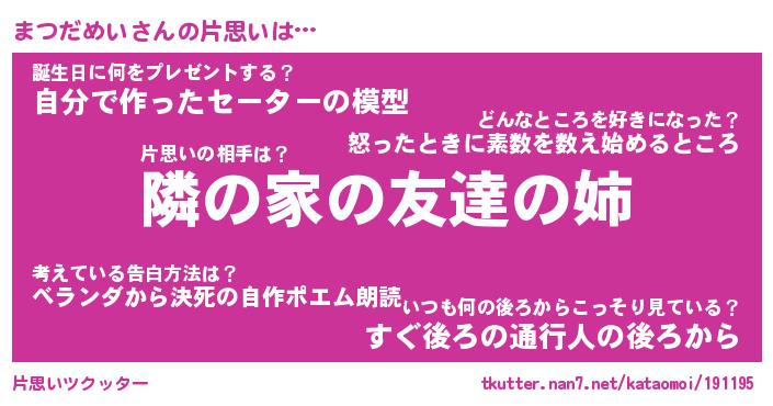 | ファンタジー風あだ名 | 『マツフェル』『エターナルマツダメイー』 |