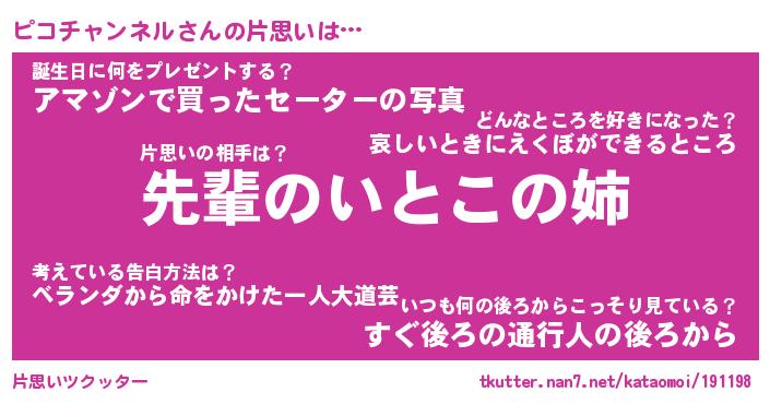 | ヘコむあだ名 | 『ピコもー』『豆乳』『ピコっ子』 |