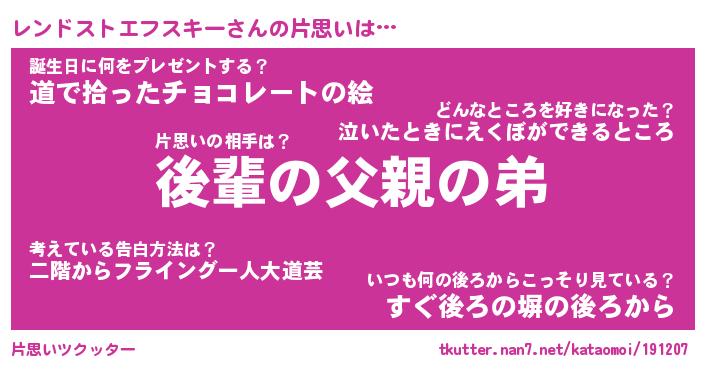 | 料理風あだ名 | 『ネギたっぷりレンドストエフスキーの南蛮漬け』 |