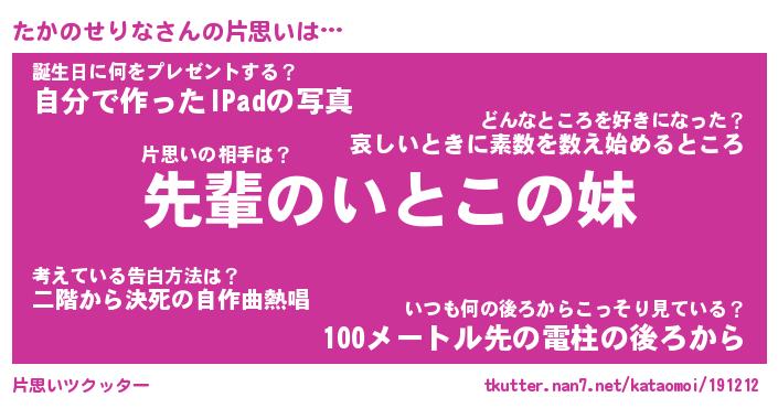 | 胡散臭い通販商品みたいなあだ名 | 『モテモテ間違いなし水晶球…その名も「たかのせりな」』 |