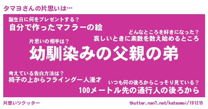 | 男性向けラノベタイトル風あだ名 | 『タマヨの憂鬱』 |