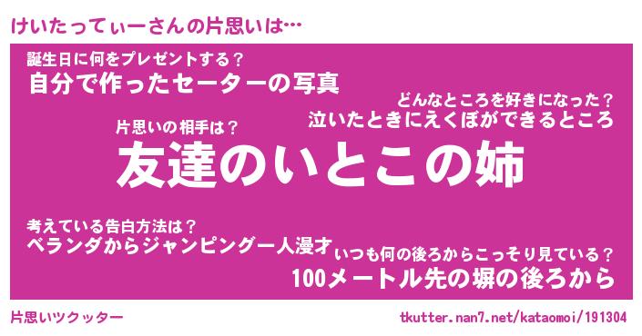 | 胡散臭い通販商品みたいなあだ名 | 『億万長者になれる水晶球…その名も「けいたってぃー」』 |