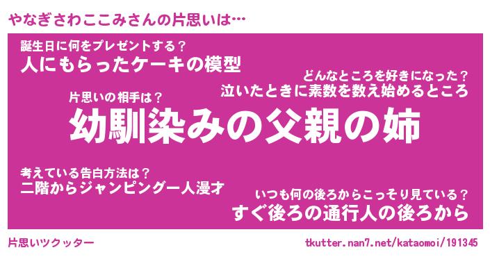 | 胡散臭い通販商品みたいなあだ名 | 『必ず成功する水晶球…その名も「やなぎさわここみ」』 |