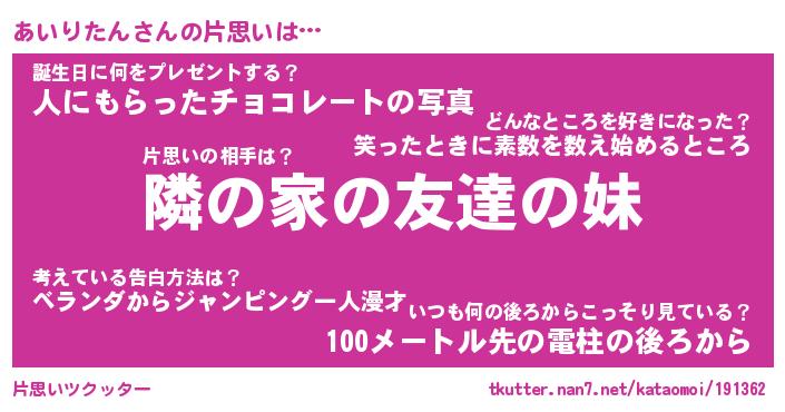 | 胡散臭い通販商品みたいなあだ名 | 『必ず成功する霊験あらたかなお札…その名も「あいりたん」』 |