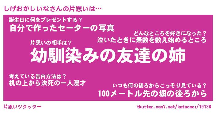 | 男性向けラノベタイトル風あだ名 | 『しげおかしいなの憂鬱』 |