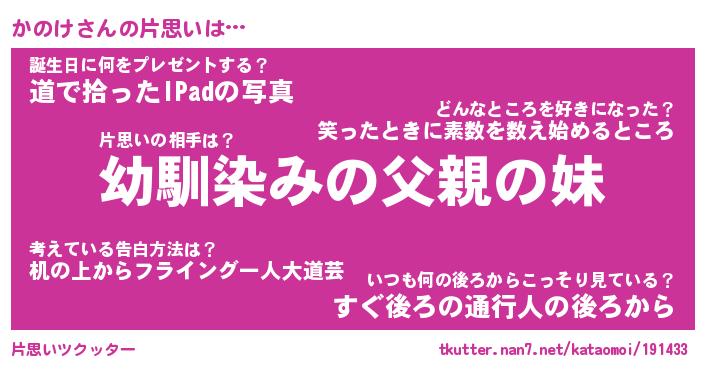 | 胡散臭い通販商品みたいなあだ名 | 『必ず成功するブレスレット…その名も「かのけ」』 |