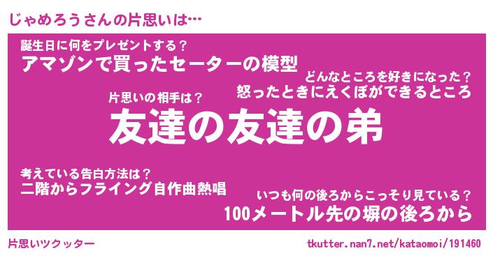 | 胡散臭い通販商品みたいなあだ名 | 『億万長者になれる霊験あらたかなお札…その名も「じゃめろう」』 |