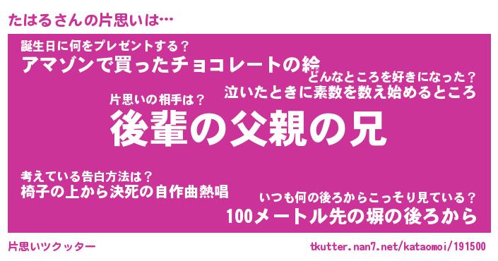| ツイッター | たはるさんのツイッターID『dendenmushi_idle』 |
