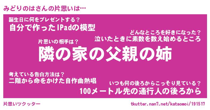 | 胡散臭い通販商品みたいなあだ名 | 『必ず成功する水晶球…その名も「みどりのは」』 |