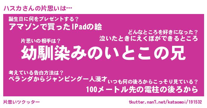 | 男性向けラノベタイトル風あだ名 | 『ハスカの憂鬱』 |