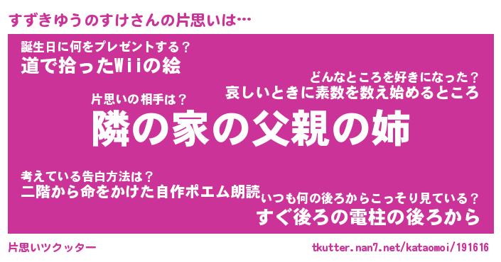 | ツイッター | すずきゆうのすけさんのツイッターID『kikurage_star』 |