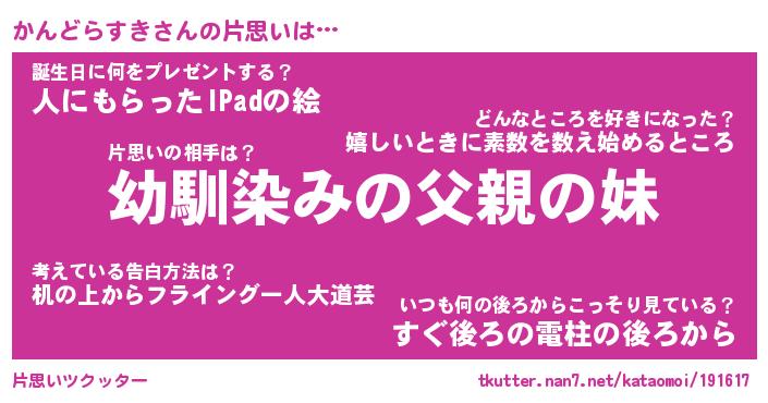 | 2回繰り返すあだ名 | 『かんかん』『かかんん』『おらおら』 |