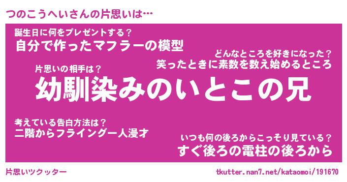 | 男性向けラノベタイトル風あだ名 | 『つのこうへいの憂鬱』 |
