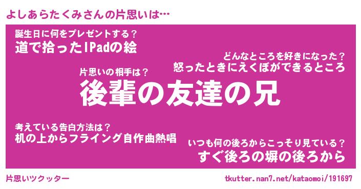 | ヘコむあだ名 | 『よしっふぃ~』『牛乳』『よしっ子』 |
