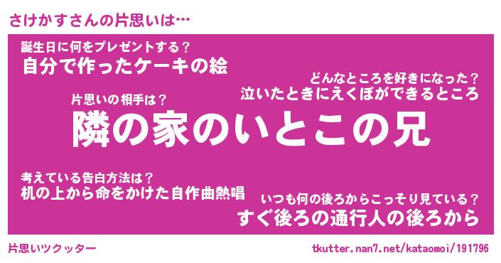| 2回繰り返すあだ名 | 『さけさけ』『ささけけ』『うねうね』 |