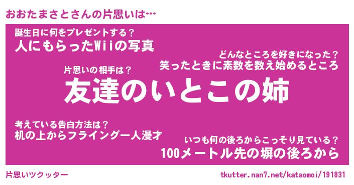 | 伝説のあだ名 | 『封印されしスナイパーおおたまさと』 |