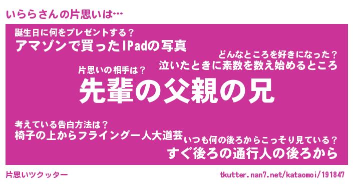 | 意味不明あだ名 | 『ペロリンいらら』『いららフォーエバー』 |