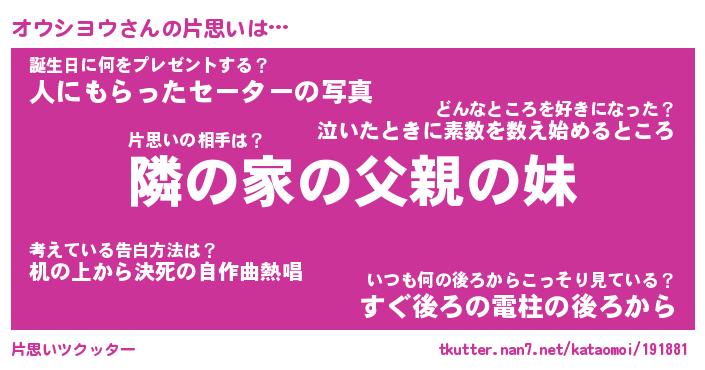 | ポケモン風あだ名 | 『オウチュウ』『オウシダネ』 |