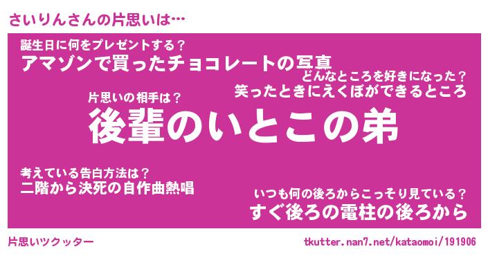 | 意味不明あだ名 | 『ペロリンさいりん』『永久保存さいりん』 |