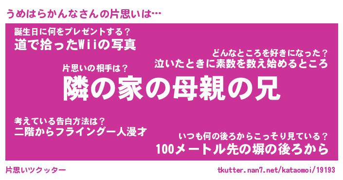 | ヘコむあだ名 | 『うめにー』『豆乳』『うめっ子』 |