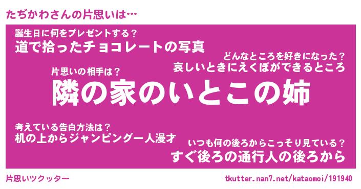 | 胡散臭い通販商品みたいなあだ名 | 『モテモテ間違いなし霊験あらたかなお札…その名も「たぢかわ」』 |